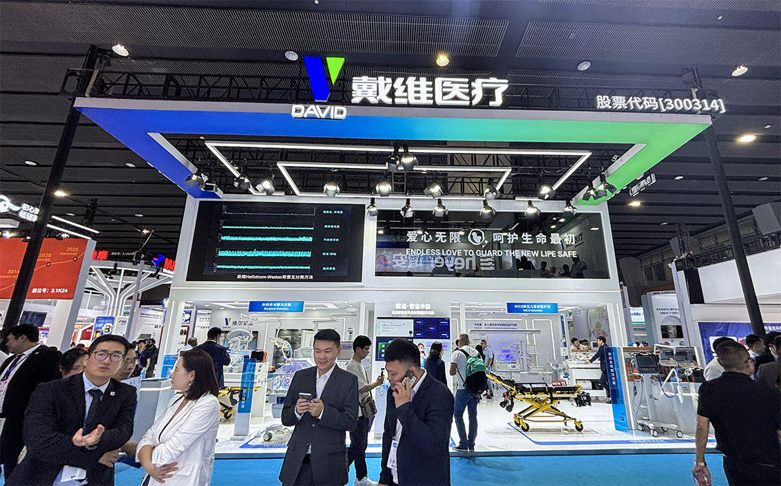 本次展會(huì),戴維醫(yī)療以“數(shù)智賦能,聚勢(shì)拓行”為主題,帶來(lái)7大產(chǎn)品展區(qū)、5大解決方案等創(chuàng)新成果。展臺(tái)設(shè)計(jì)上采用象征生命與活力的藍(lán)綠色光帶環(huán)繞的形式,與“愛(ài)心無(wú)限,呵護(hù)生命最初”的理念相呼應(yīng),在一在一眾展位中呈現(xiàn)出新生命般的獨(dú)特視覺(jué)體驗(yàn)。